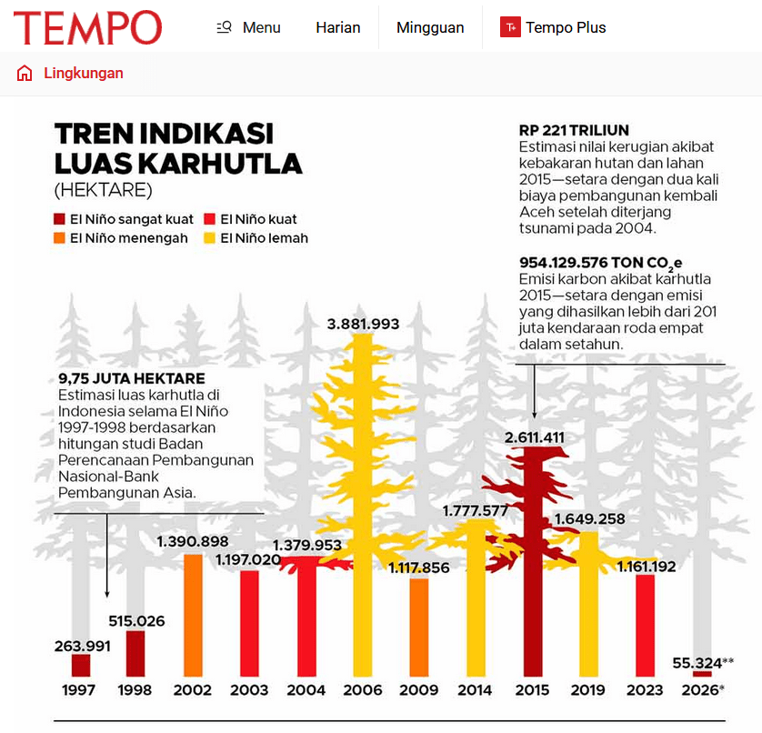 Jakarta is not unaware of the problem. An official from the Ministry of Forestry said they have been worried fires would break out, especially in peat areas, for the last year. “The existing facilities and infrastructure are not operational because they don’t have the necessary logistics,” the official told Tempo.co on Friday, April 17, 2026.